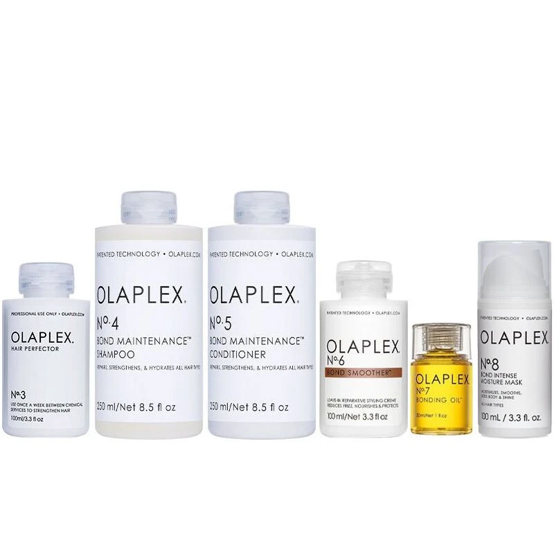 Bestel het beschadigd haar pakket Olaplex No. 3 + 4 + 5 + 6 + 7 + 8 pakket met hoge korting op Haibu