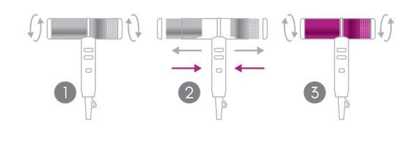 De Atmos Dryer heeft 3 temperatuurinstellingen en 3 snelheden. Daarnaast beschikt de föhn over een Cold Shot knop, voor directe toevoer van koude lucht om zo iedere style te fixeren. De haardroger heeft indicatielampjes waarop de temperatuur en snelheid gemakkelijk is af te lezen.