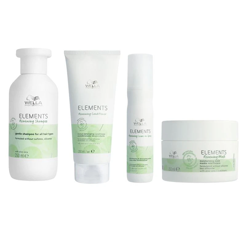 Wella Elements Renewing Mask laat haar en hoofdhuid weer gezond aanvoelen. Het haar wordt heerlijk zacht en glanzend en is beschermd tegen pluizen en haarbreuk. Geschikt voor alle haartypes. Het Wella Renewing Mask is 100% vegan en vrij van siliconen. Het haarmasker bevat voor 95% ingrediënten van natuurlijke oorsprong, waaronder olijfolie, aloë vera en vitamine E.