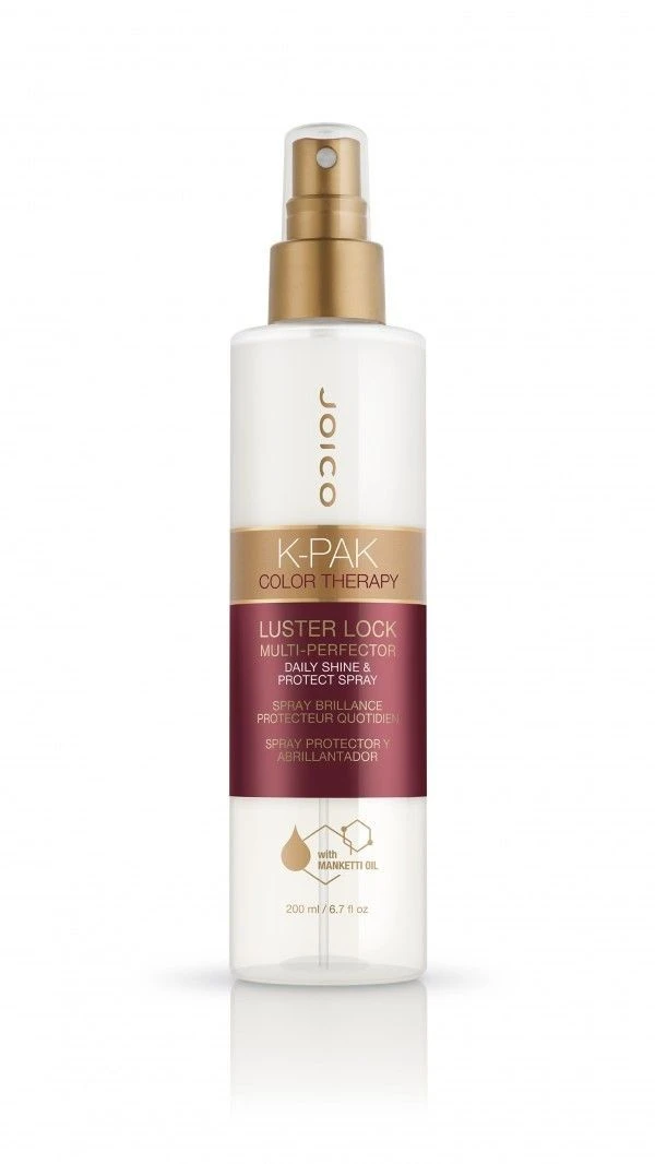De Joico K-Pak Color Therapy Luster Lock Spray 200ml is een glansspray die het haar versterkt en beschermt tegen UV-stralingen. Daarnaast zorgt deze spray ervoor dat jij langer kan genieten van je geverfde kleur, stralende kleur wordt behouden. Het haar wordt ontklit en makkelijker doorkambaar. Na gebruik voelt het haar zachter en gladder aan zonder dat het verzwaard word.