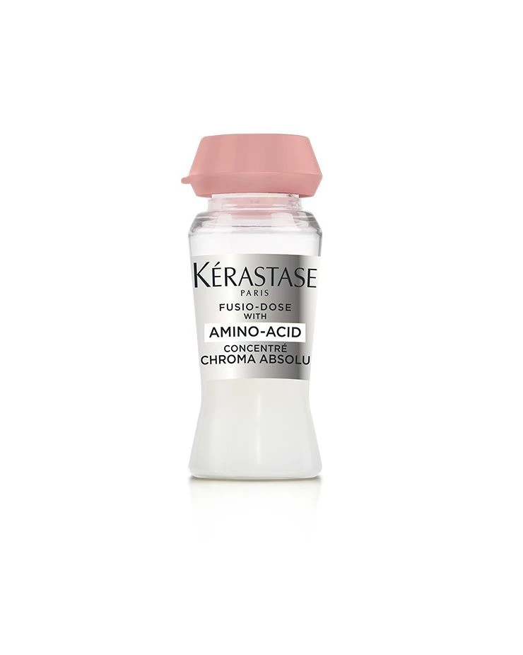 Kérastase Fusio-Dose Concentré Chroma Absolu is een voedend concentraat dat het gekleurde haar de ultieme verzorging biedt! Dit witte, luxueuze concentraat is geïnspireerd door huidverzorging en is speciaal ontworpen om schade veroorzaakt door kleuring te herstellen en de haarkleur stralend te houden.