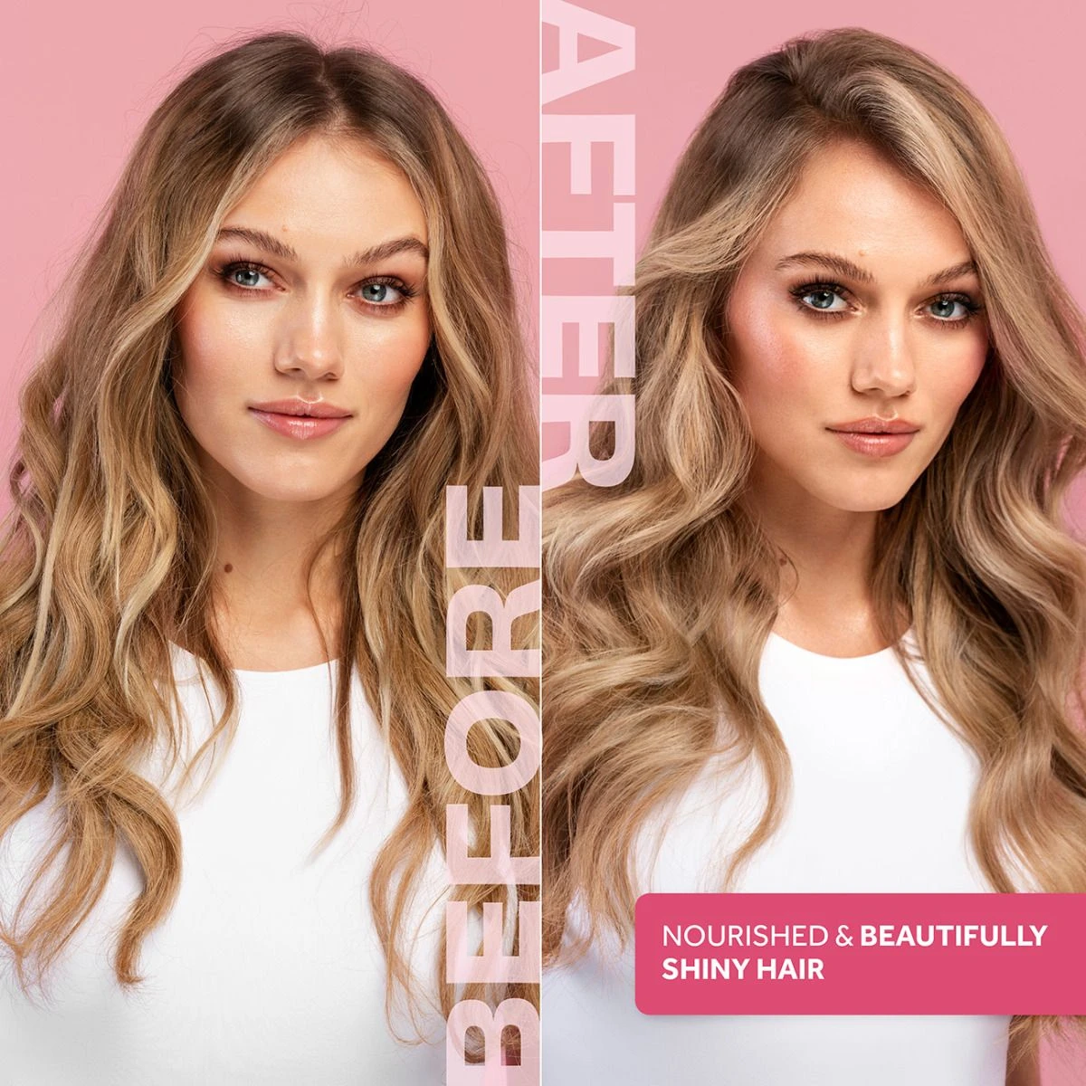 Het haar zal zachter en gladder worden en de glans in het haar wordt verbeterd. Pluishaar is verleden tijd. De formule herstelt het haar en geeft het haar het vocht dat het nodig heeft.