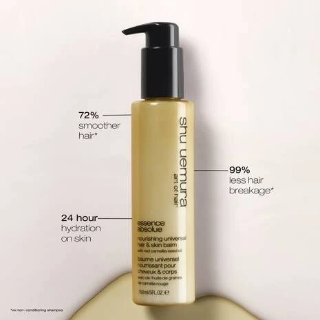 Ontdek de veelzijdigheid van Shu Uemura Essence Absolue Universal Balm Hair & Skin, het wonderproduct voor elk haartype en huid. Deze voedende en beschermende leave-in balsem, verrijkt met kamille olie, is een must-have voor je dagelijkse verzorgingsroutine.