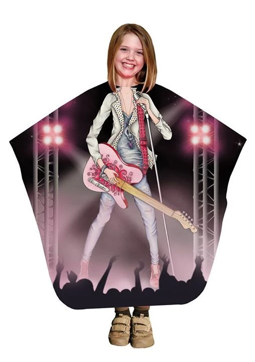 “Met de kinderkapmantel Rock Star zal het knippen bij kinderen eenvoudiger gaan. Door deze speelse mantel zal zij zich de gehele knipbeurt een echte popster voelen. Deze kapmantel is gemaakt van 100% polyester en komt uit de Jockey collectie van Trend-Design. De Kinderkapmantel Rock Star heeft een afmeting van 135x125cm en word van achter dichtgemaakt met een haaksluiting.