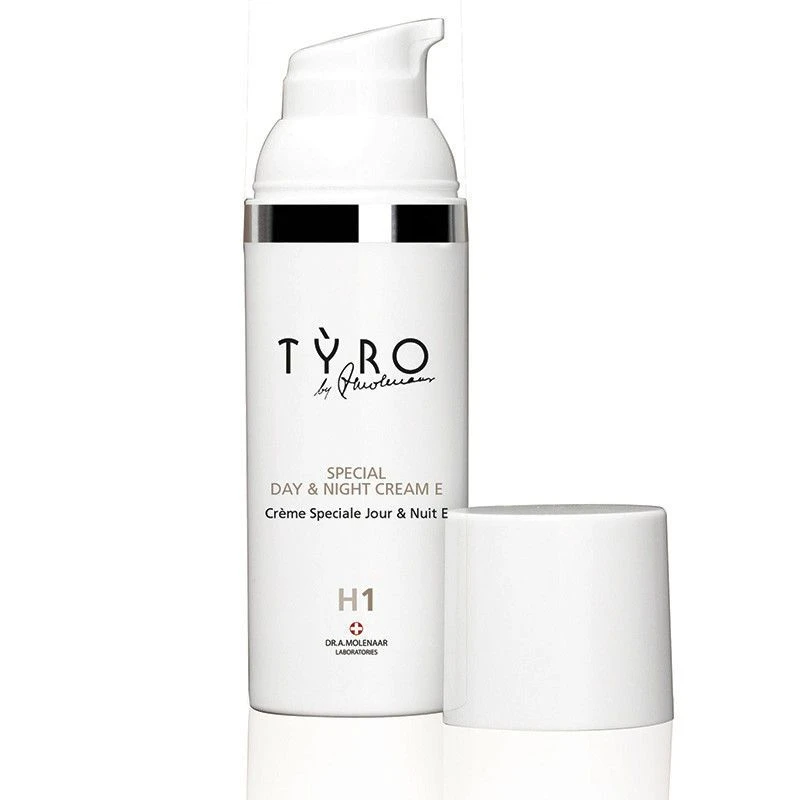 De Tyro Special Day & Night Cream E 50ml is een dag en nachtcreme. Deze voedende 24 uurs gezichtscrème is verrijkt met vitamine E & wortelextract, vertraagt rimpelvorming door de antioxidantenwerking van de vitamine E, versterkt de natuurlijke weerstand en herstelt de vochtbalans. Geeft een zacht en comfortabel gevoel aan de huid